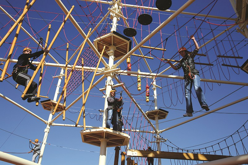 • Zipline ve Geçişler: Yüksekten hızla kayma deneyimi sunan zipline hatları ve farklı istasyonlar arasında geçiş sağlayan heyecan verici platformlar.